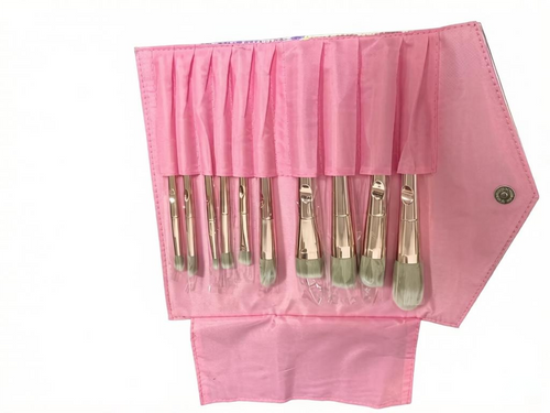 11 pieces of high-end copper-colored wooden-handle makeup brushes